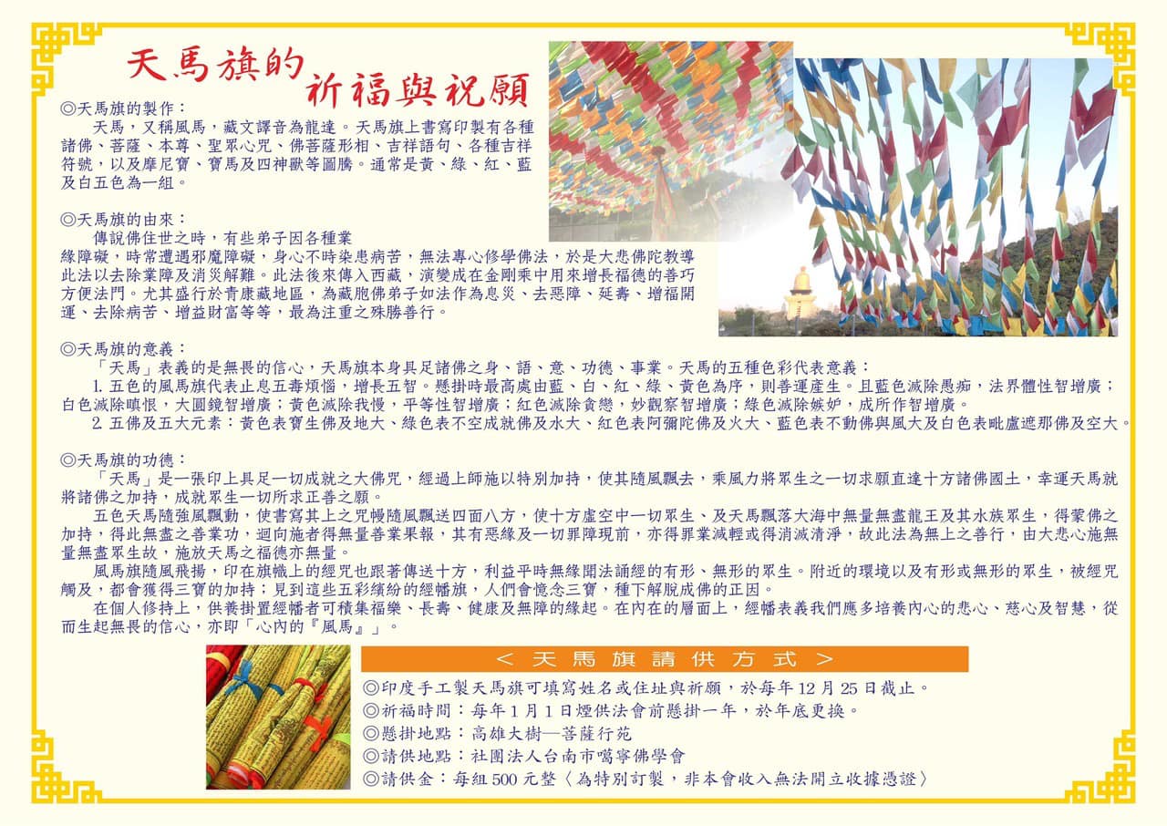 五色風馬旗將由住持堪布暨僧眾於菩薩行苑親手為大家繫上與祝福,請提早填寫。🙏🏻🙏🏻🙏🏻